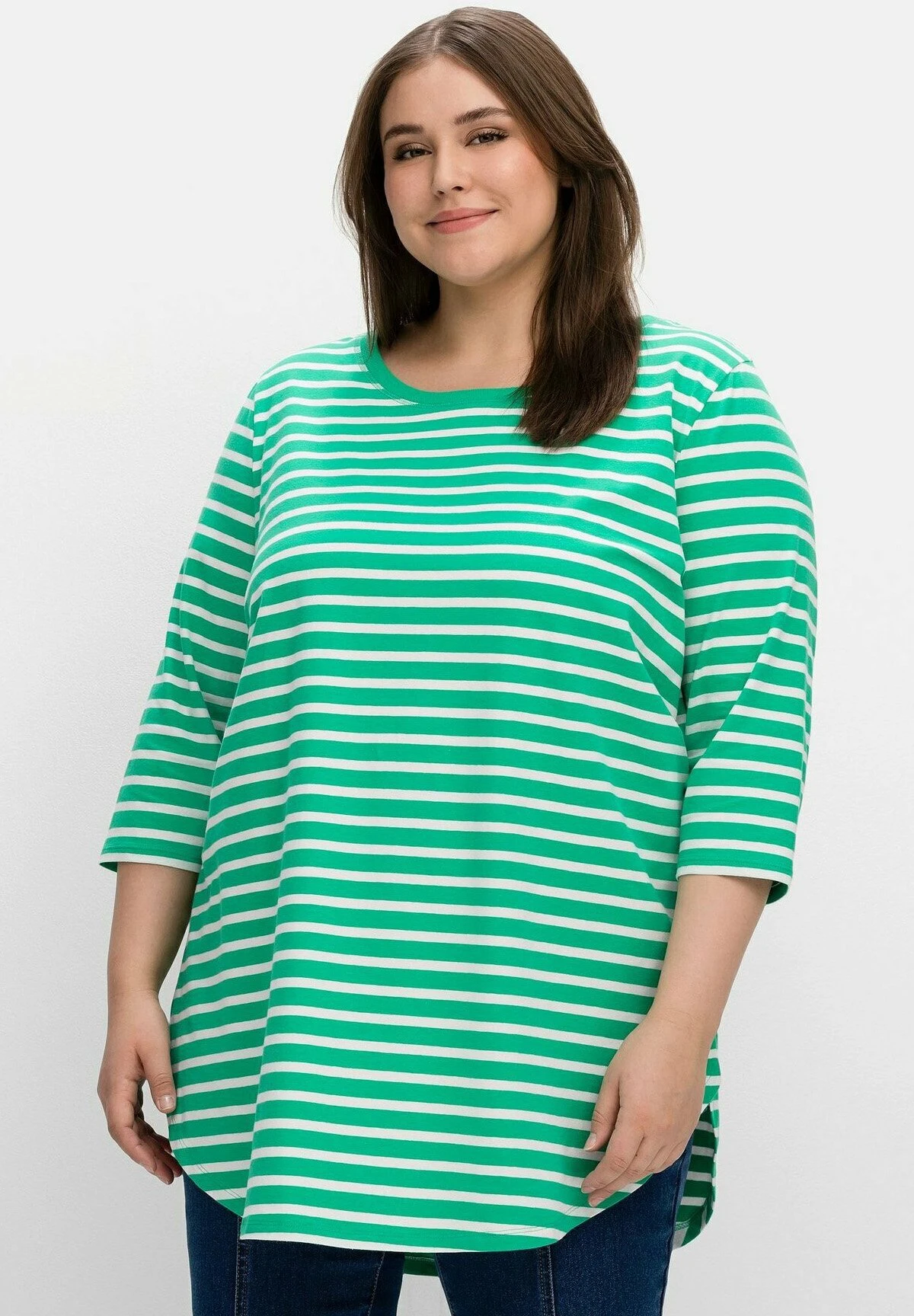 Sheego Camiseta De Manga Larga – Blattgrün Weiß