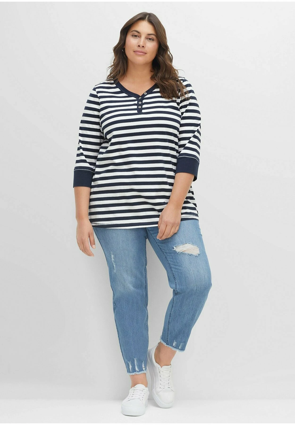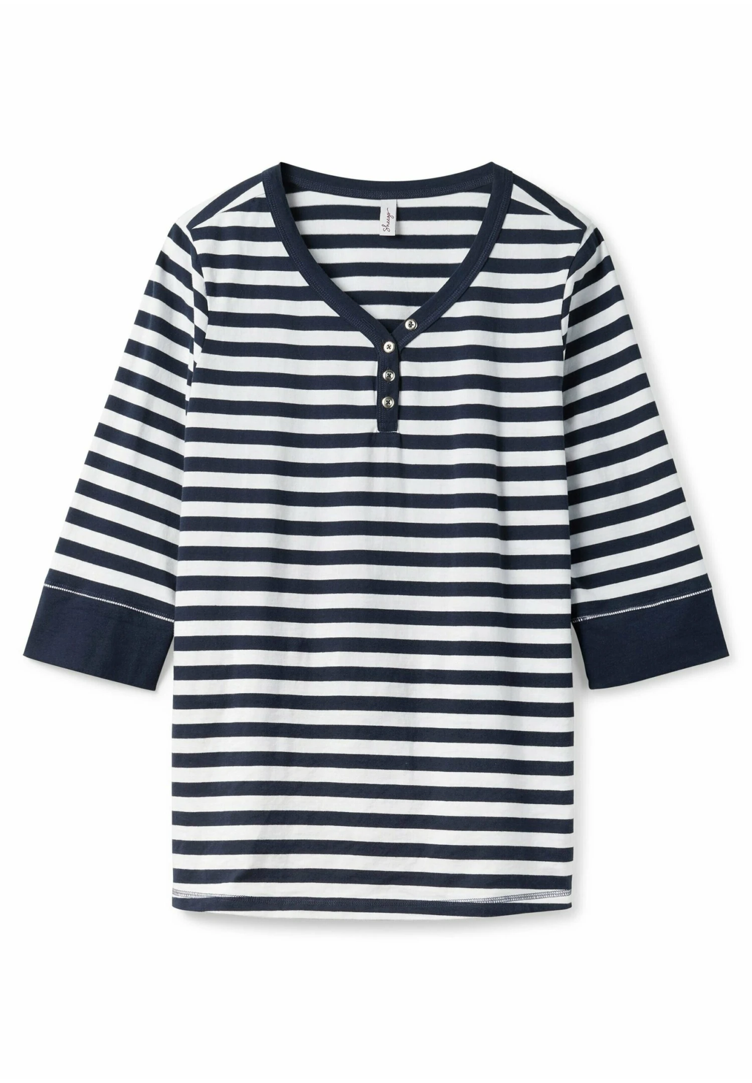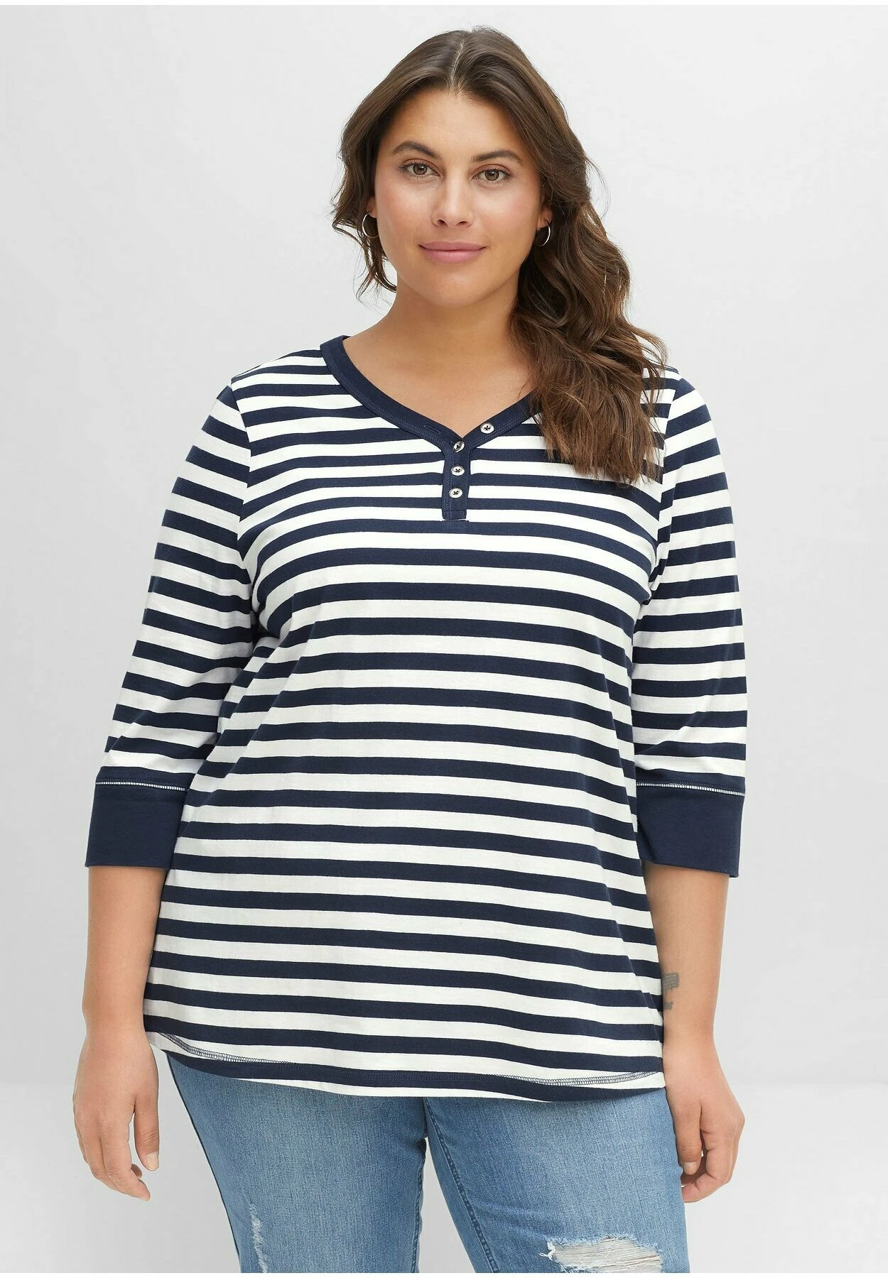 Sheego Camiseta De Manga Larga – Nachtblau Weiß