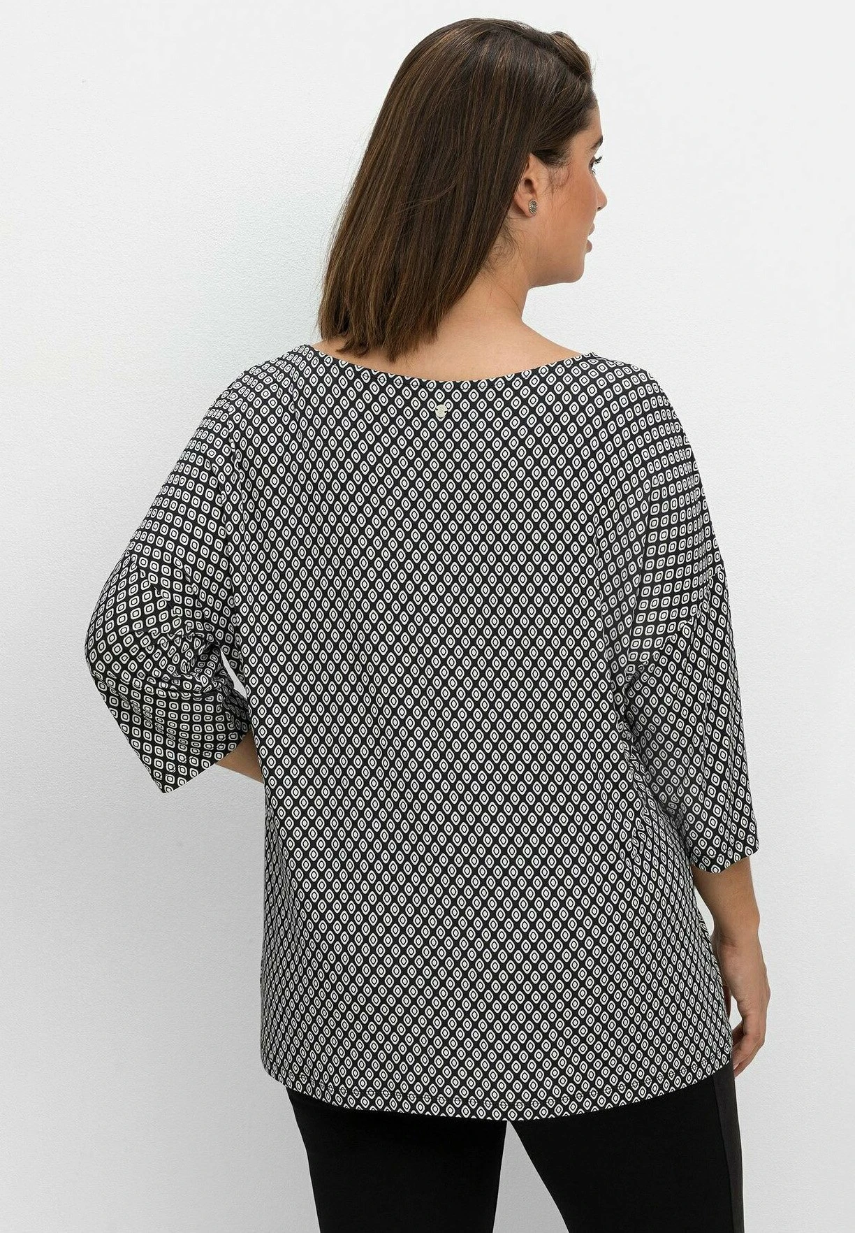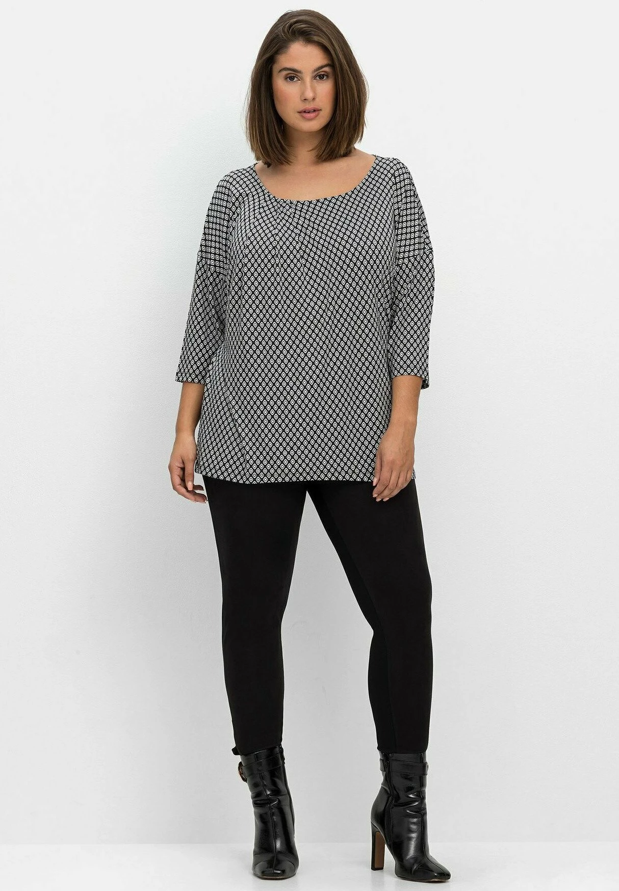 Sheego Camiseta De Manga Larga – Schwarz/Weiß