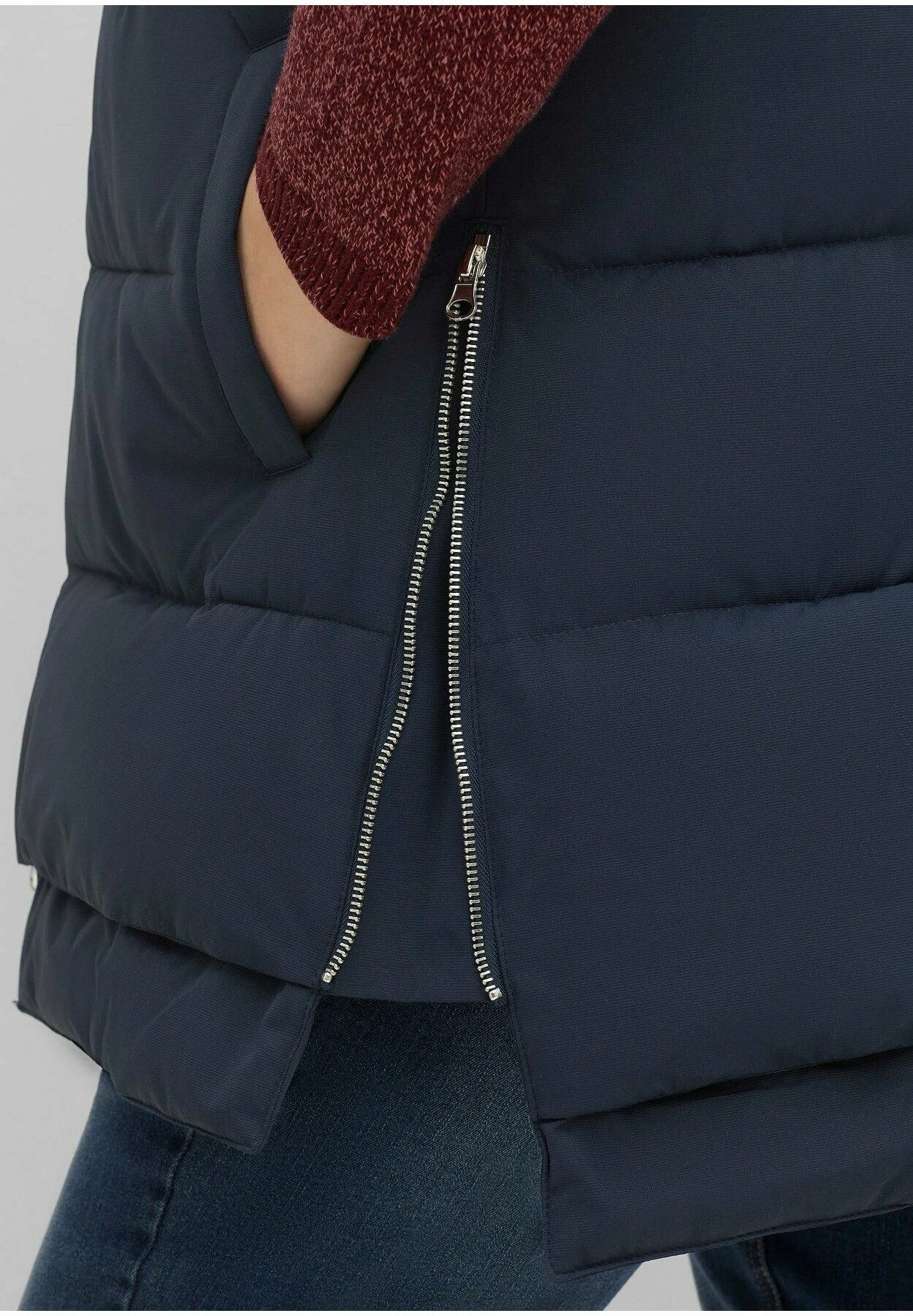 | Detalles | Bolsillos verticales, cremallera de dos direcciones, cremallera |