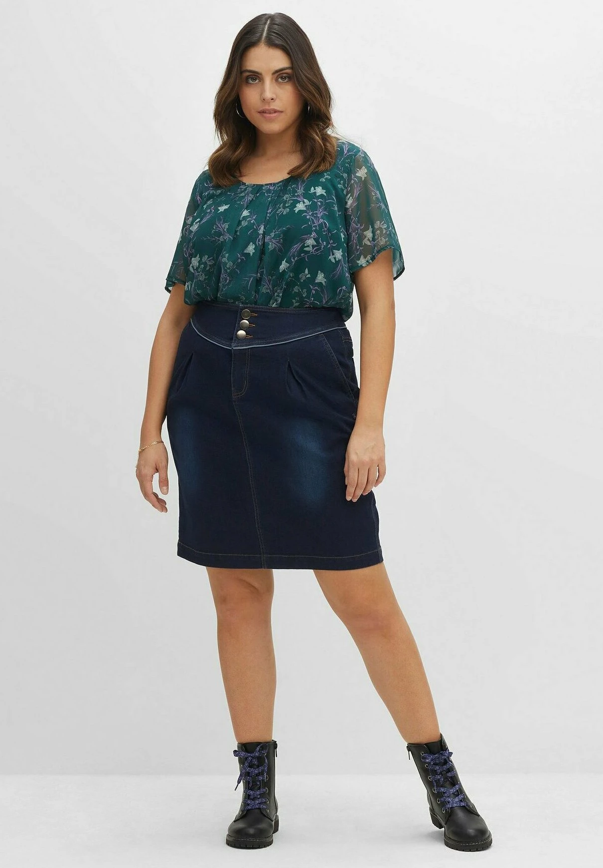 Sheego Falda Acampanada – Blue Black Denim